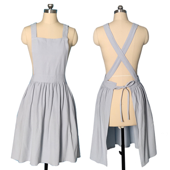 Tạp dề màu xanh da trời màu xanh nhạt dây đeo vai trở lại chéo 100% lanh